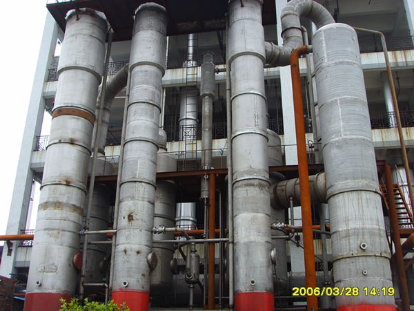 公司還涉足高濃度污水處理行業(yè)。經(jīng)過公司研發(fā)人員的努力,開發(fā)出了YBJXH型強制降膜循環(huán)多效、TVR、MVR蒸發(fā)器用于處理工業(yè)污水,并在聯(lián)邦制藥成都和內(nèi)蒙古公司、印度阿拉濱度、煙臺萬潤精細化工等應用成功。另在2002年山東魯洲集團河南公司成功利用管束干燥機的廢熱制造了18噸廢熱蒸發(fā)器,用至現(xiàn)在。其中聯(lián)邦制藥成都公司選用的污水處理蒸發(fā)器有:50噸一套,35噸2套,12噸一套;聯(lián)邦制藥內(nèi)蒙古公司選用50噸污水處理蒸發(fā)器共3套;液糖車間YBJM30噸四效降膜蒸發(fā)器2套;YBJM20噸四效降膜蒸發(fā)器2套。印度阿拉濱度25噸1套、15噸3套、10噸1套、5噸1套;2.5噸8套等等。